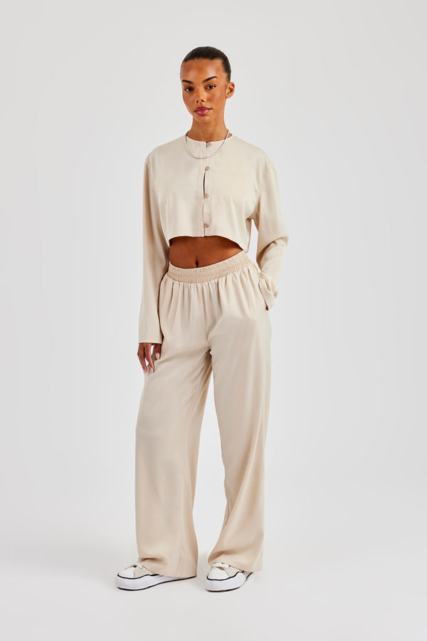 Funnel Neck Taping Zip Through Track Jacket & Wide Leg Pant - Taupe