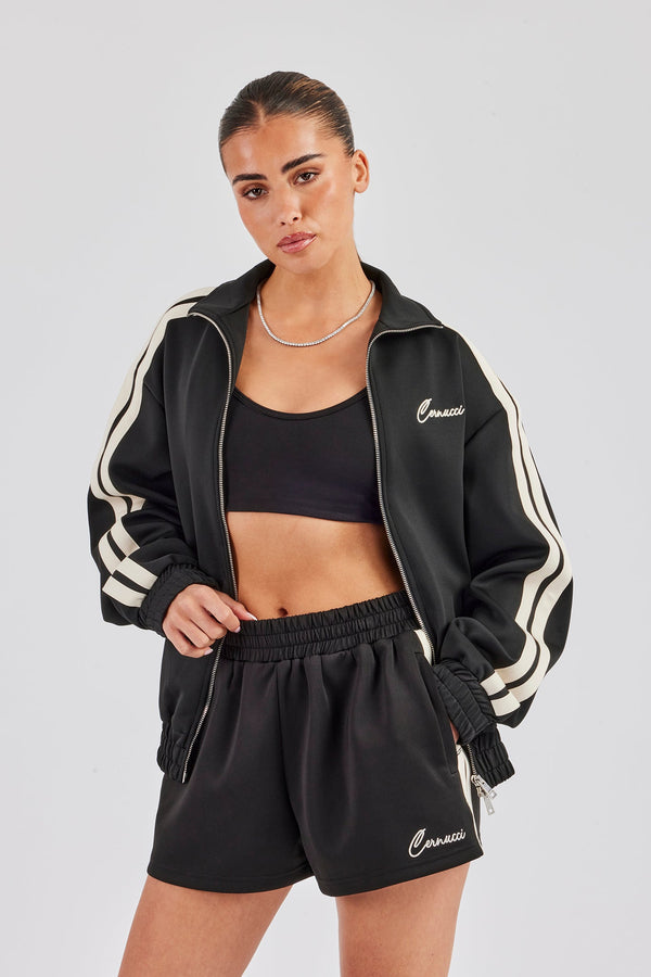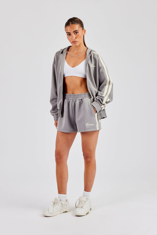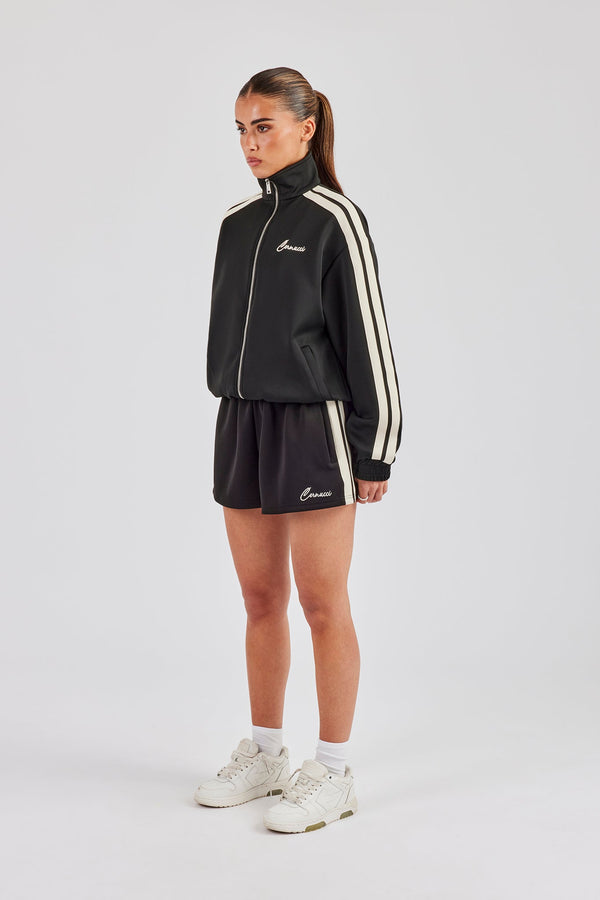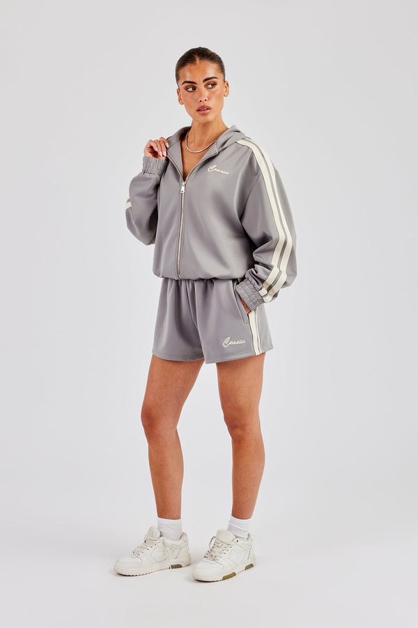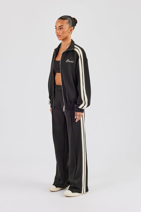 Funnel Neck Taping Zip Through Track Jacket & Wide Leg Pant - Charcoal