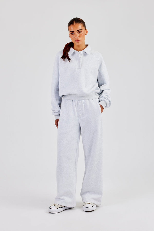 Heavyweight Jersey Collared Bomber Jacket & Wide Leg Jogger - Grey Marl