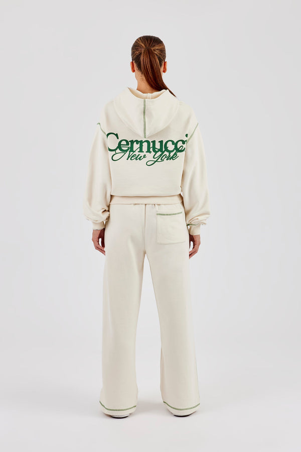 Cernucci Cropped Zip Through Hoodie & Wide Leg Jogger - Burgundy