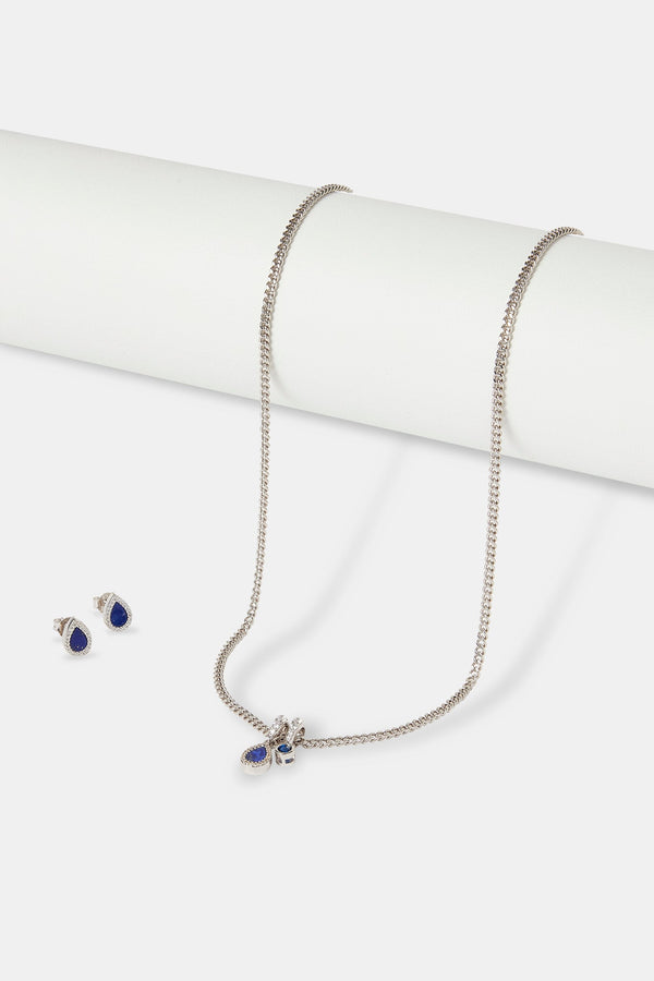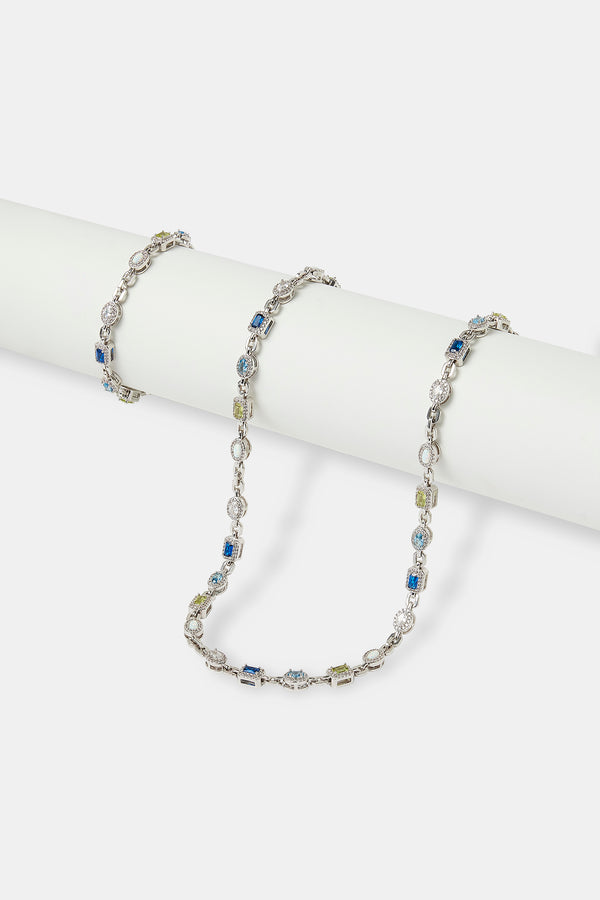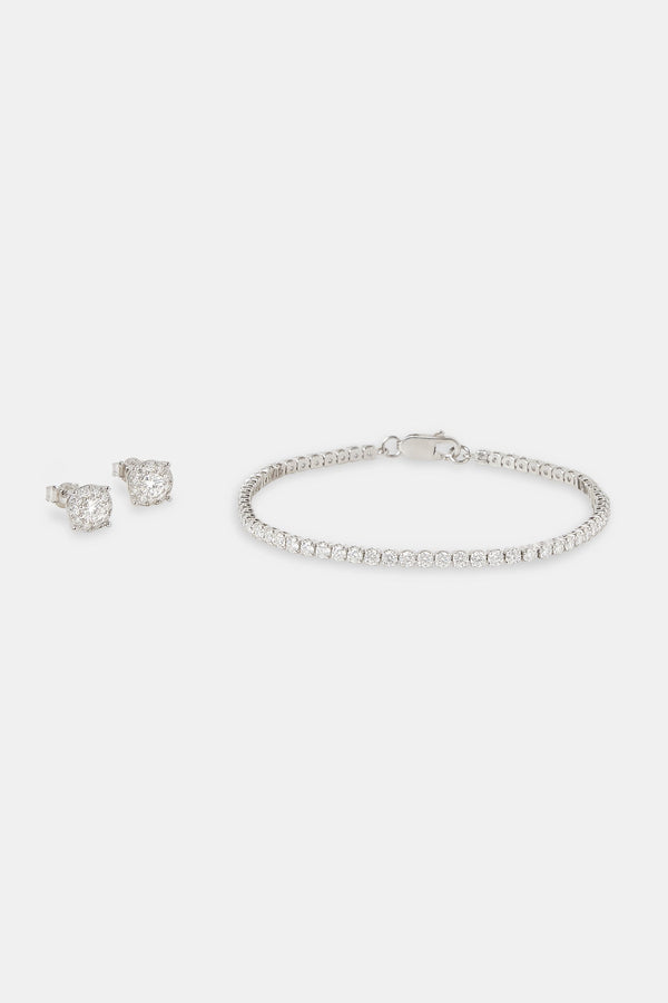 5mm Blue Motif Tennis Bracelet & 3mm Tennis Bracelet - White
