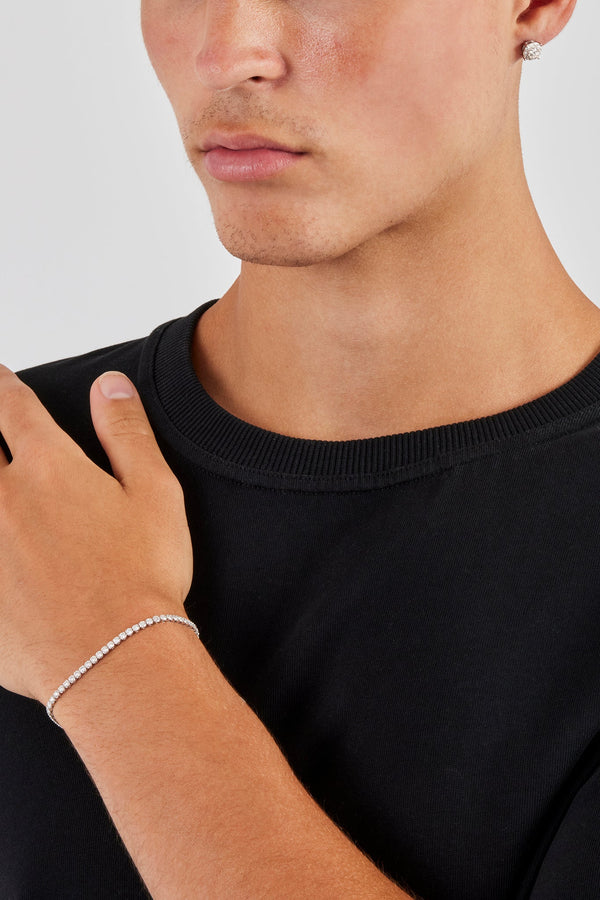5mm Black Motif Tennis Bracelet & 3mm Tennis Bracelet - White
