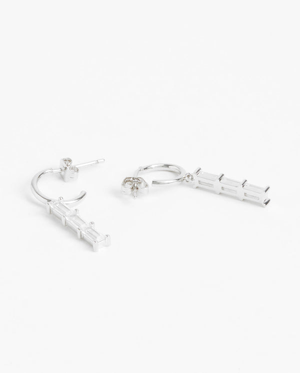 Moissanite Baguette Centre Square Stud Earrings - 10mm