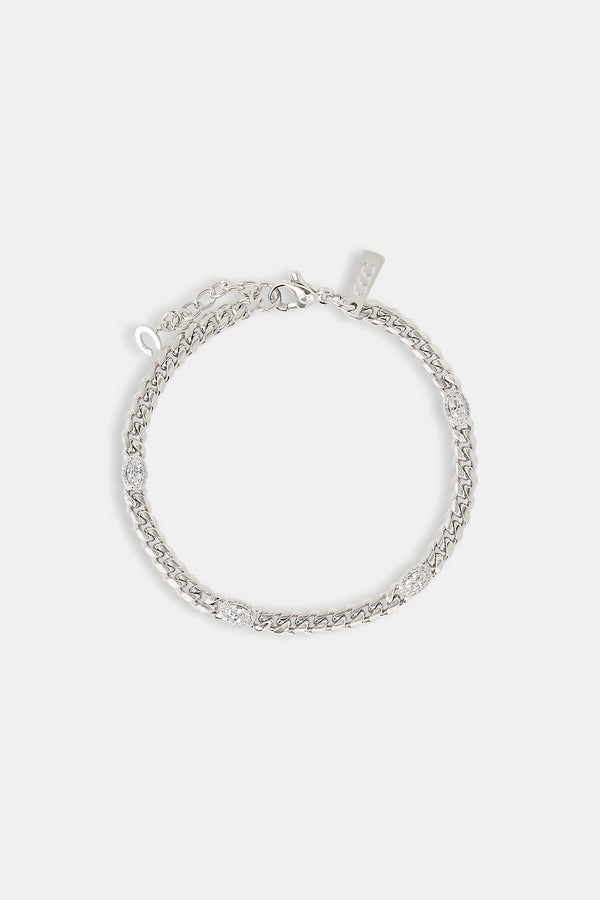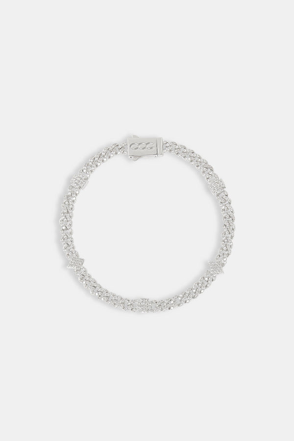 Iced Cross Cuban Bracelet - 5mm - WhiteIced Cross Cuban Bracelet - 5mm - White