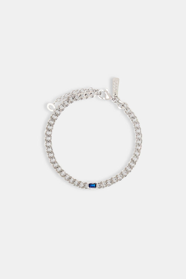 Blue CZ Baguette Motif Rolo Bracelet - 8mm
