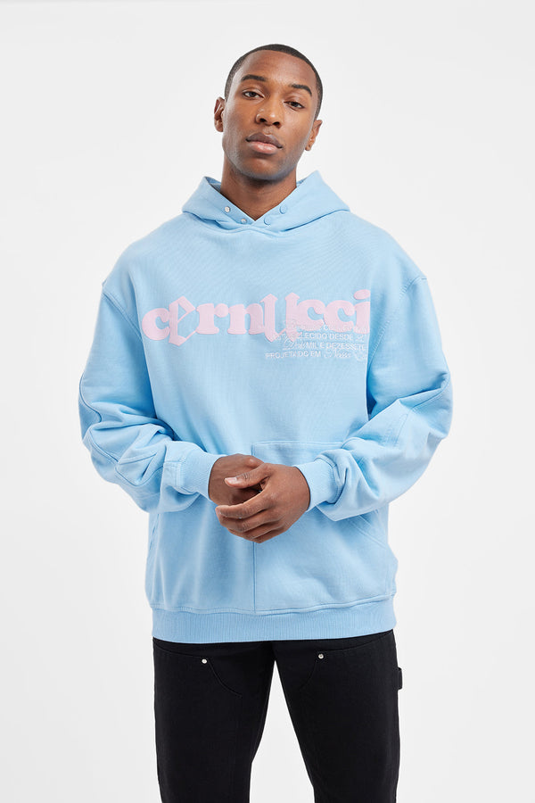 Washed Applique Boxy Zip Through Hoodie - Acid Wash