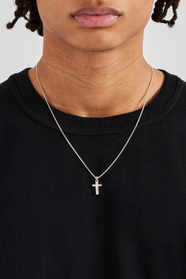 Polished Cross & Clear Gemstone Necklace - 10mm