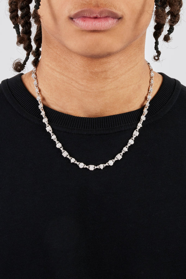 Clear CZ Baguette Motif Rolo Bracelet - 8mm