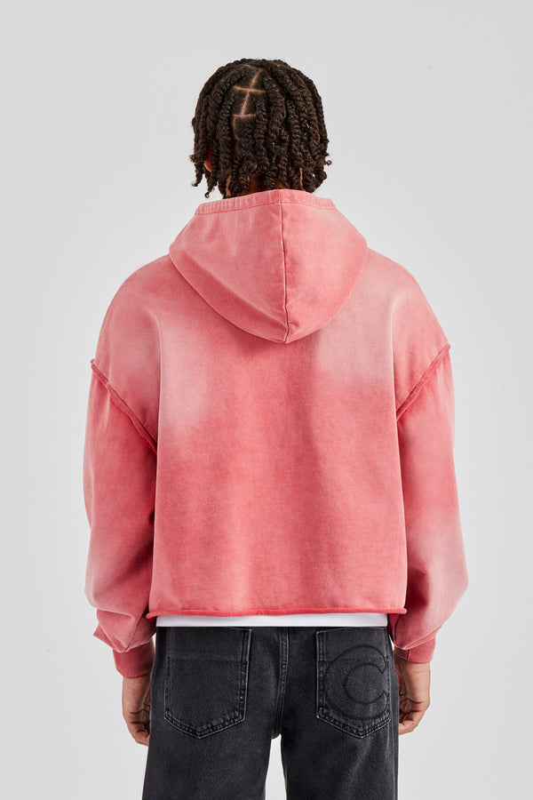 Acid Exposed Seam Zip Through Hoodie - Stone