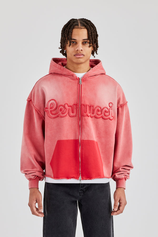 Cernucci Script Boxy Zip Through Hoodie - Black