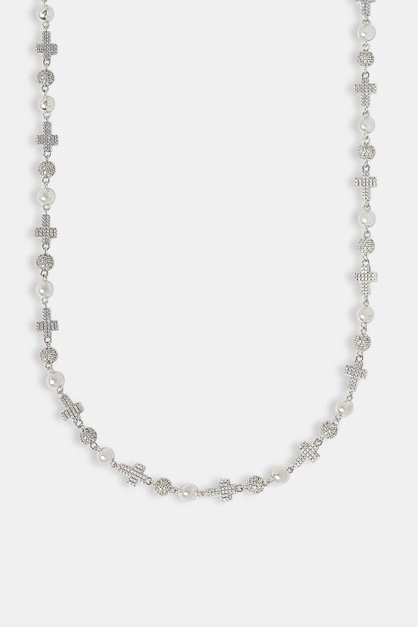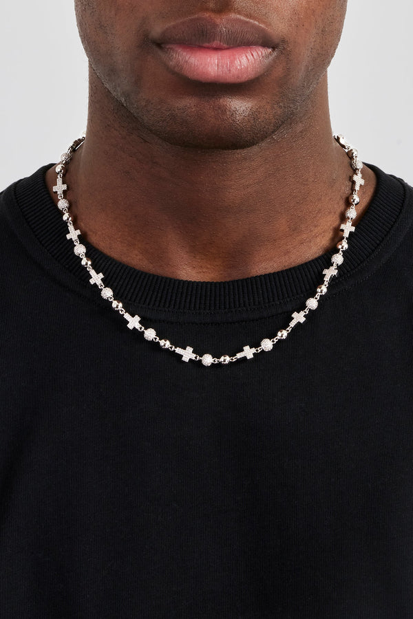 Iced Cross & Clear Gemstone Layered Necklace - 20mm