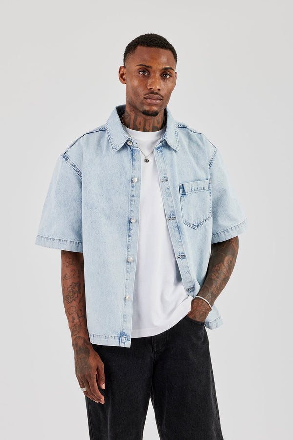 Embroidered C Boxy Zip Through Hoodie - Navy Blue