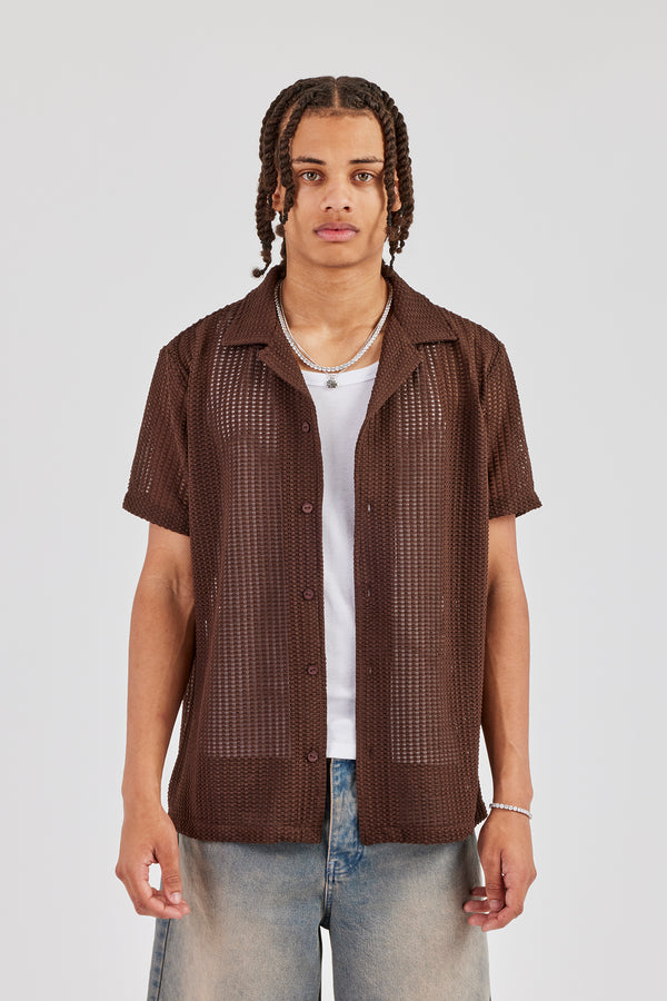 Textured Button Front Revere Shirt - Chocolate