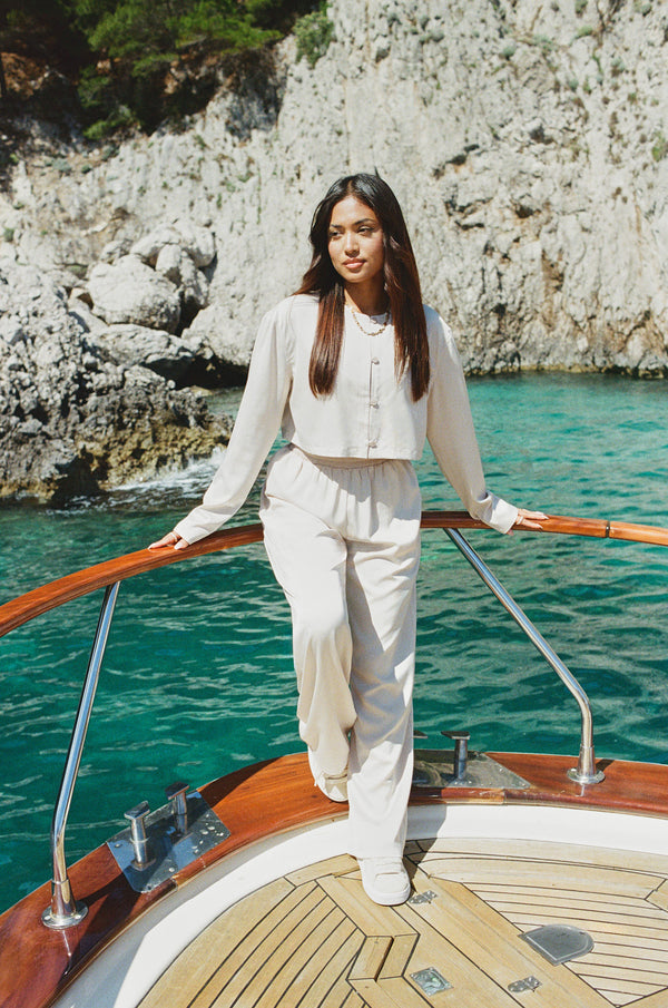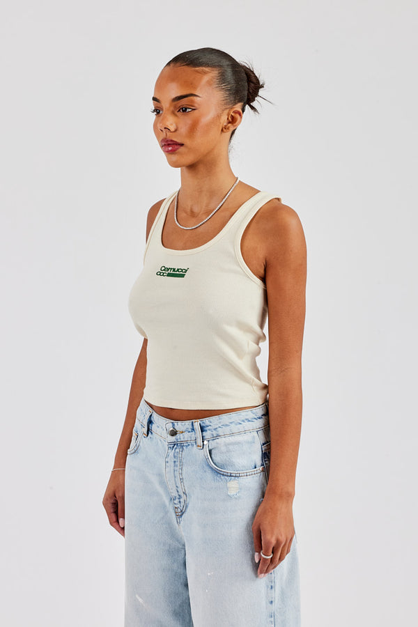 Ribbed Cropped Tank Top with Trim Detail - Stone