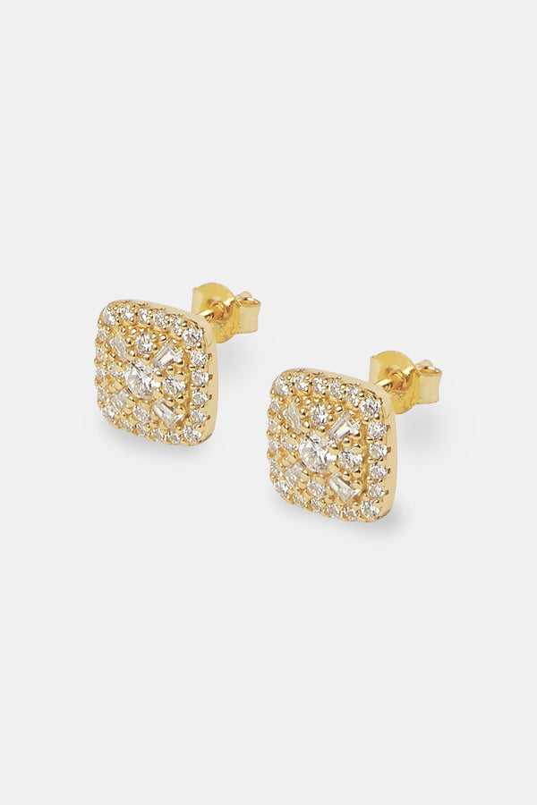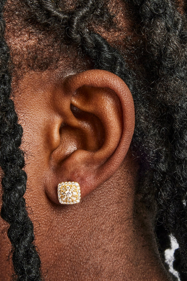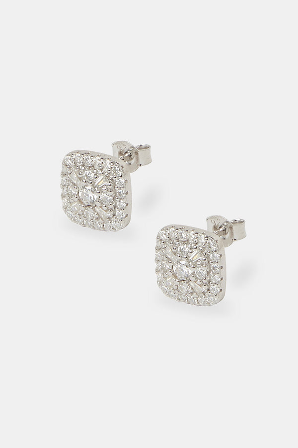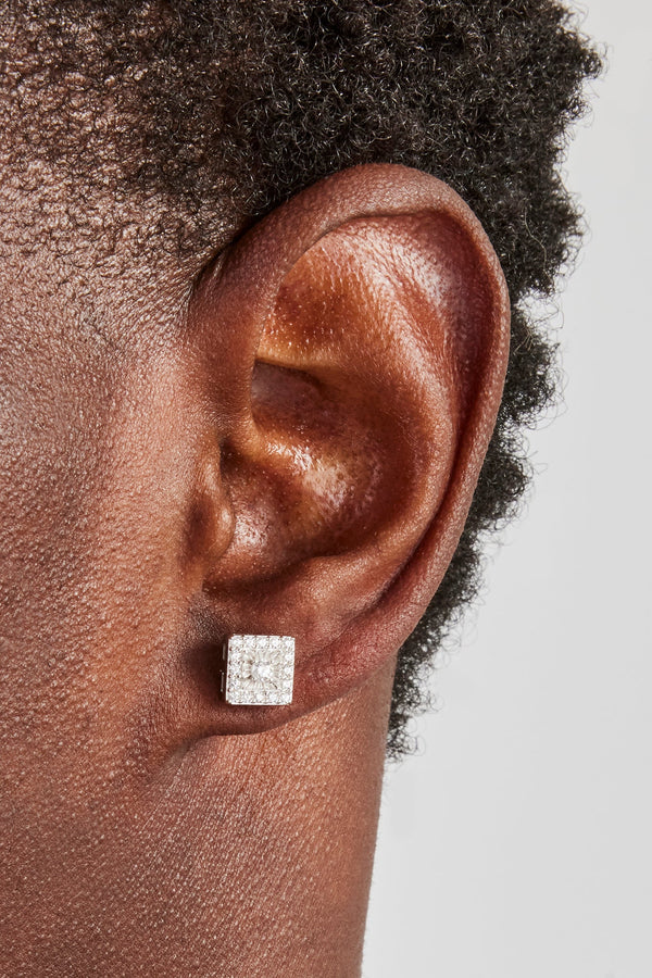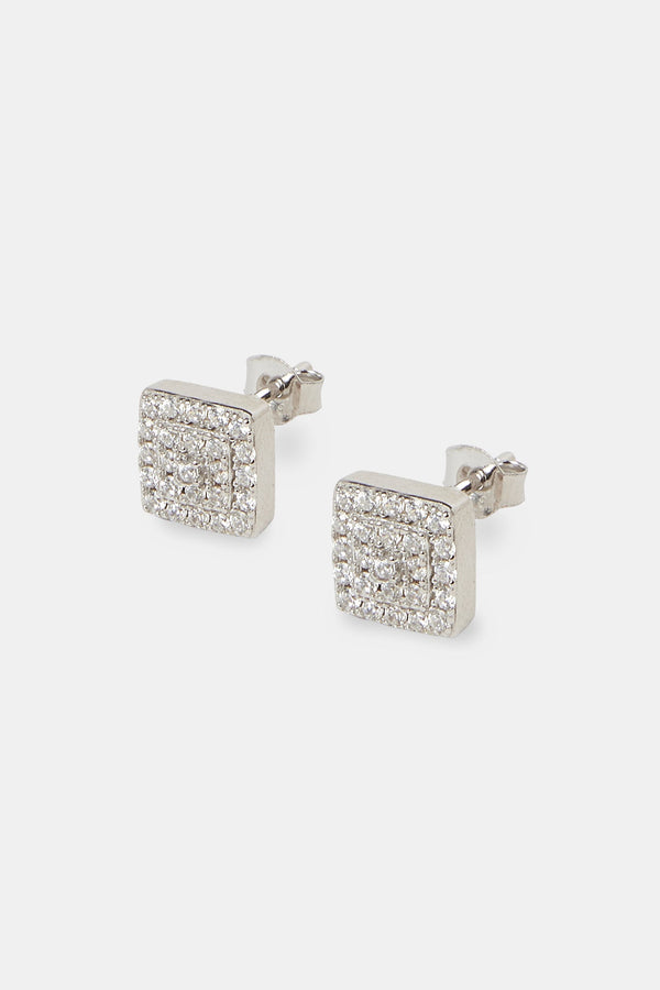 Iced Pave Cross Square Studs - 6mm - WhiteIced Pave Cross Square Studs - 6mm - White