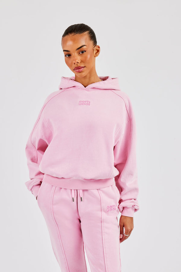 Washed Applique Logo Boxy Zip Through Hoodie & Wide Leg Jogger - Navy