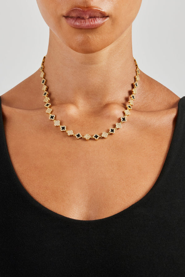 Iced Motif Outline & Gemstone Necklace - 10mm