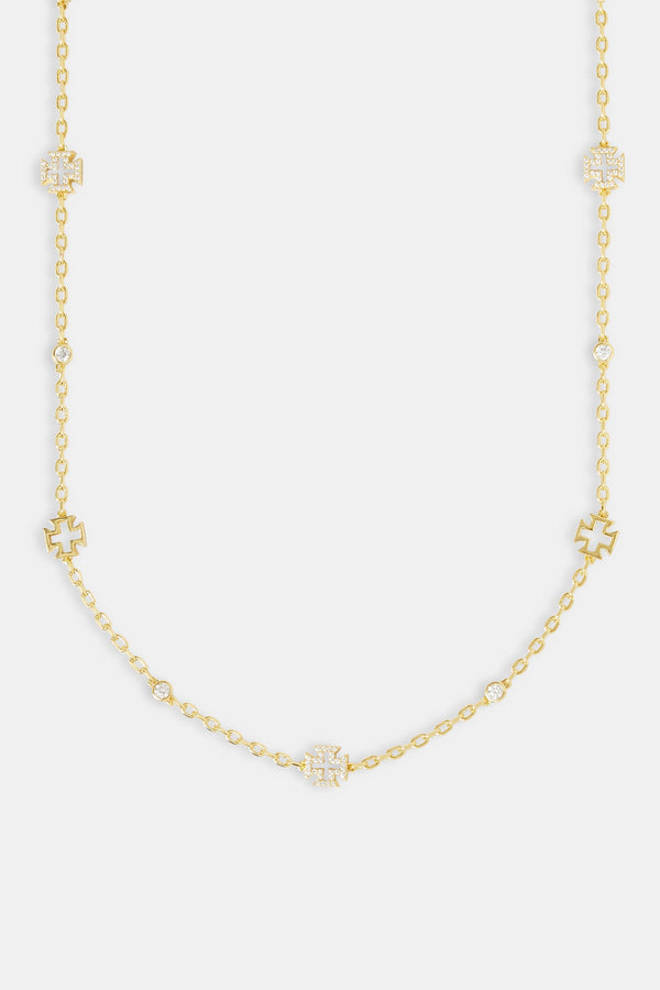 Iced Chocolate Gemstone Cross Cuban Necklace - 40mm - Gold