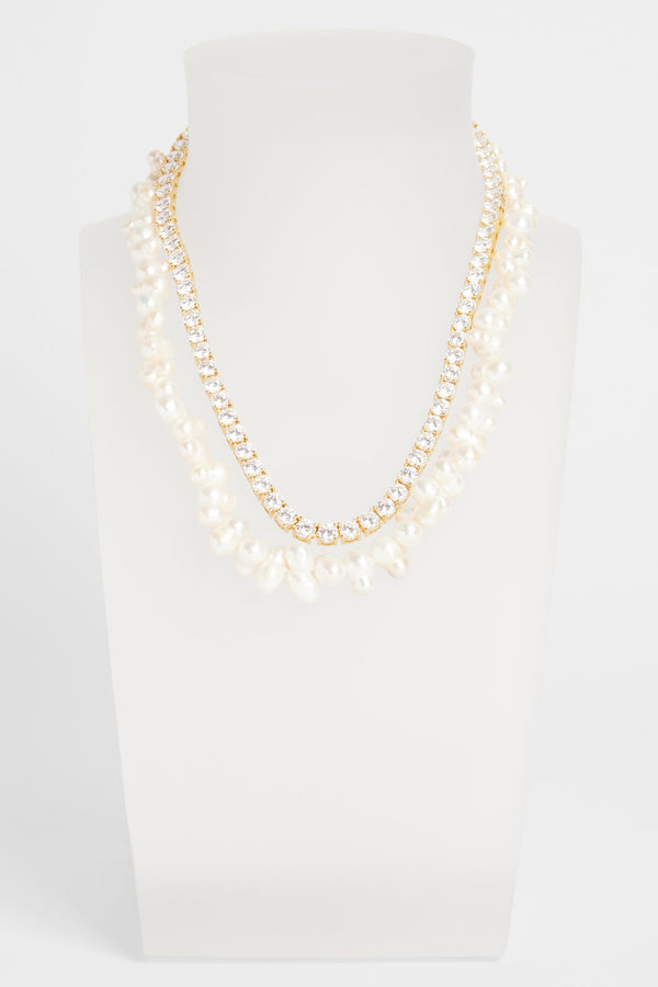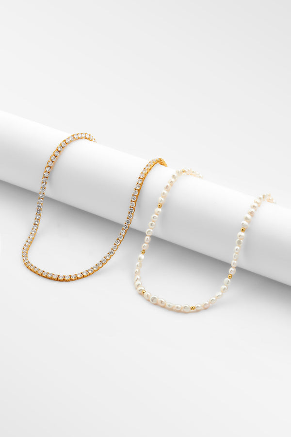 Womens 3mm Tennis Chain & Bracelet - Gold