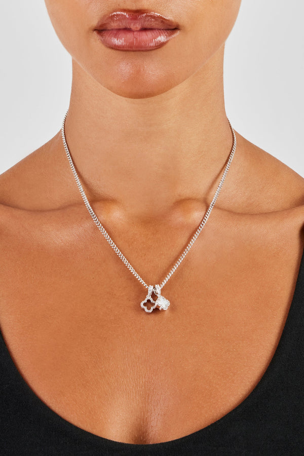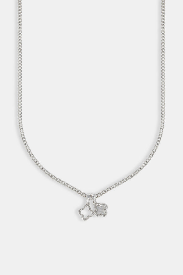 Iced & Mother Of Pearl Double Motif Necklace - 10mm