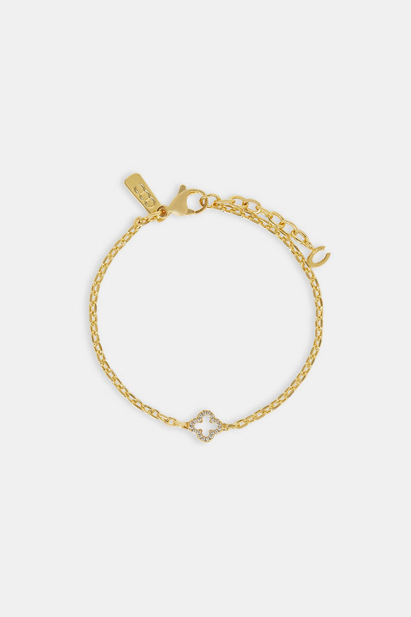 Iced Motif Outline & Gemstone Micro Cuban Bracelet - 2.5mm - Gold