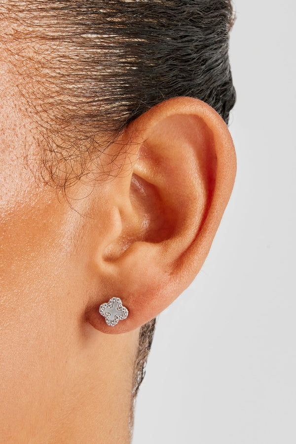 Motif Mother of Pearl Stud Earrings - 8mm - White