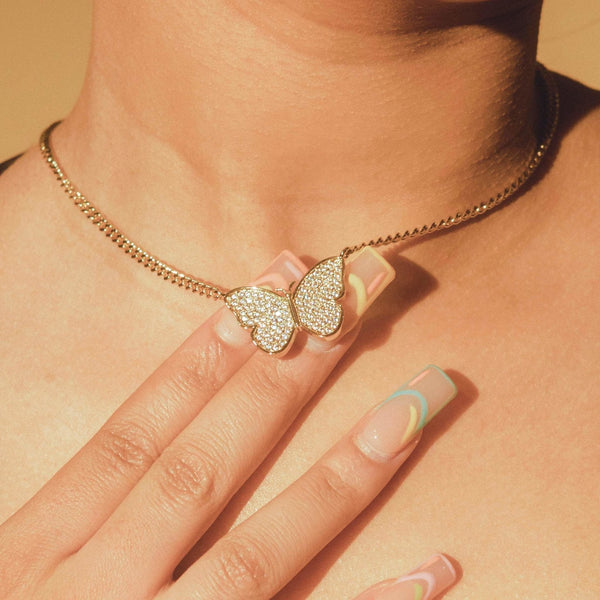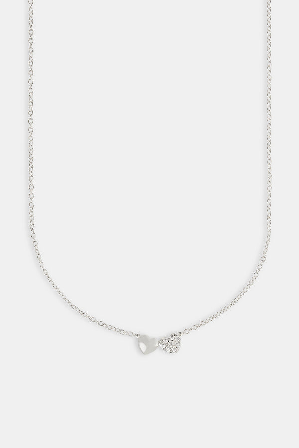 Double Layer Iced & Heart Rolo Necklace - 12mm