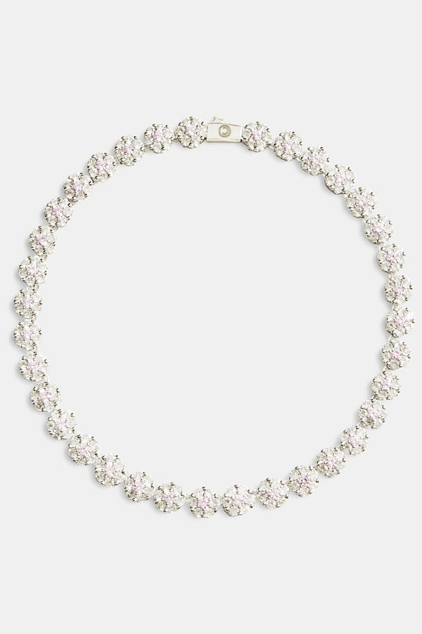 Iced Motif Outline & Pink Gemstone Necklace - 10mm - White
