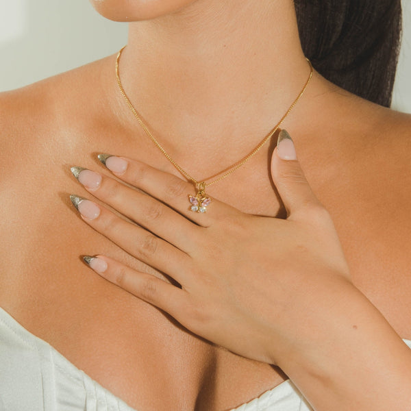 Iced Aries Zodiac Necklace - Gold - 3mm