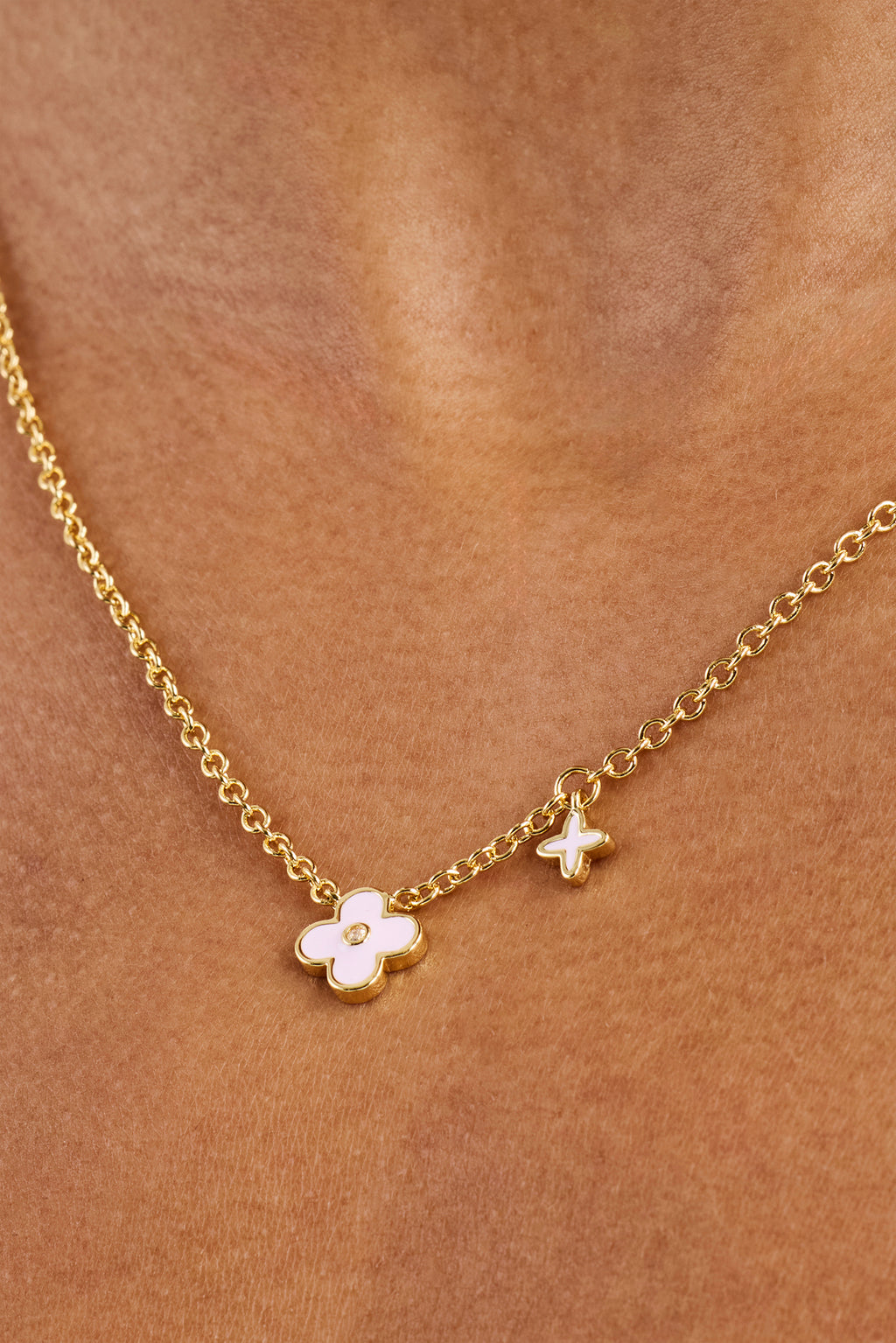 Our 10mm Double Motif Enamel Necklace goes hard. Layer up with other necklaces, bracelets or wear alone.