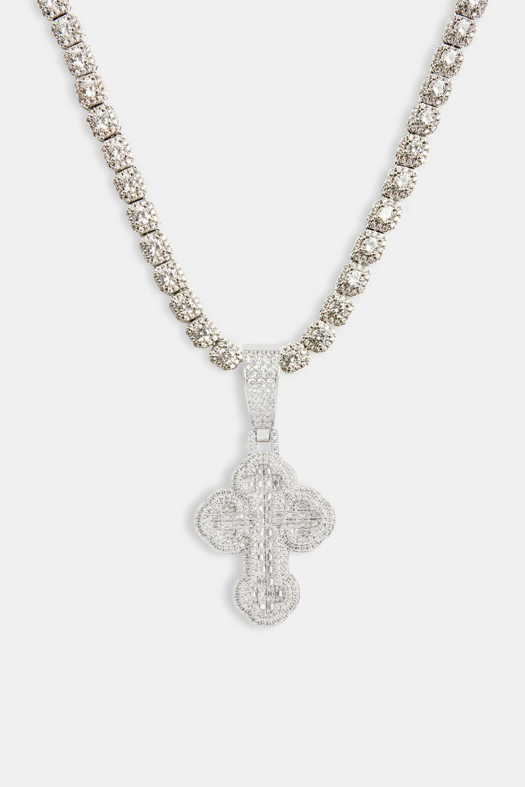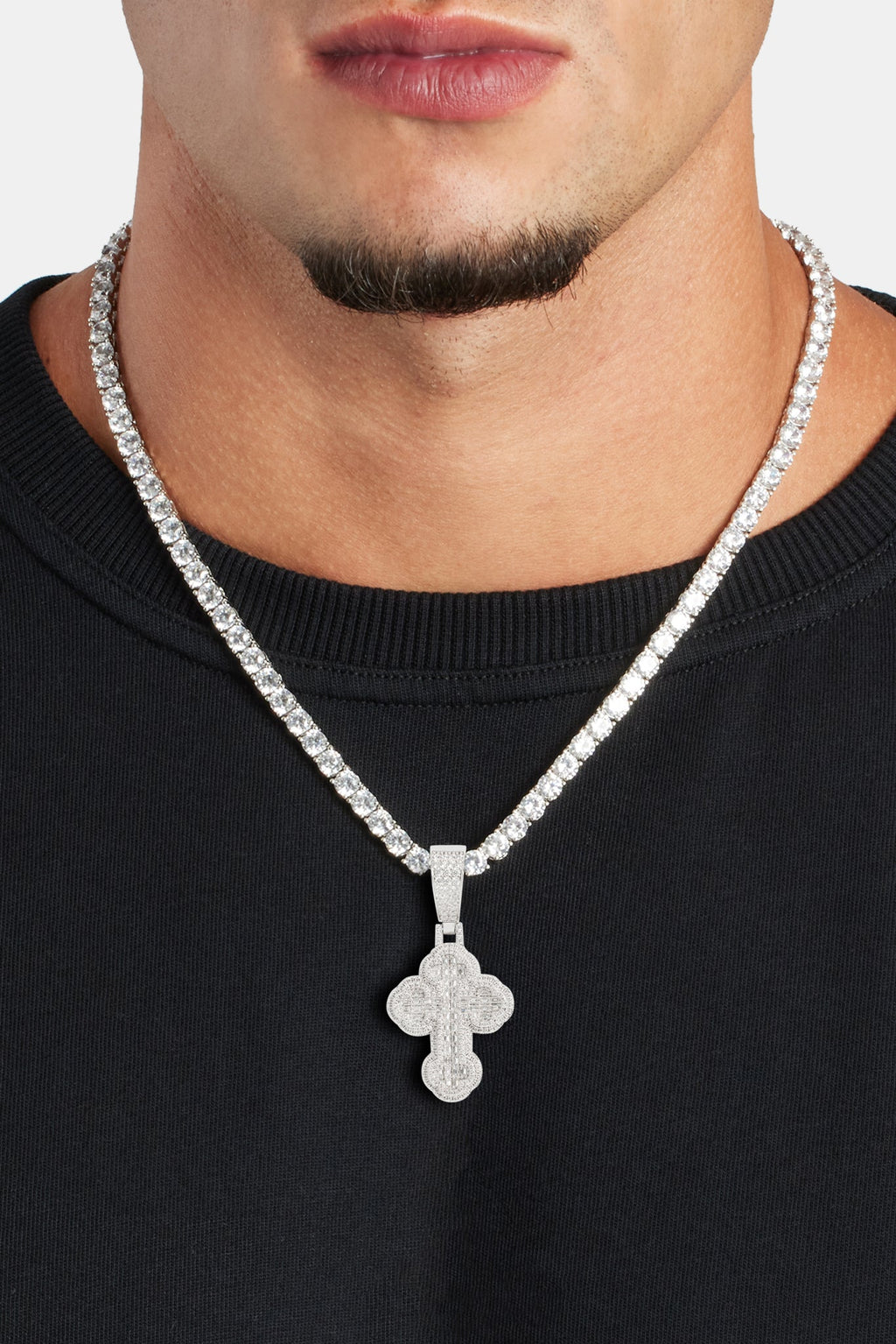 35mm Iced CZ Rounded Cross Pendant