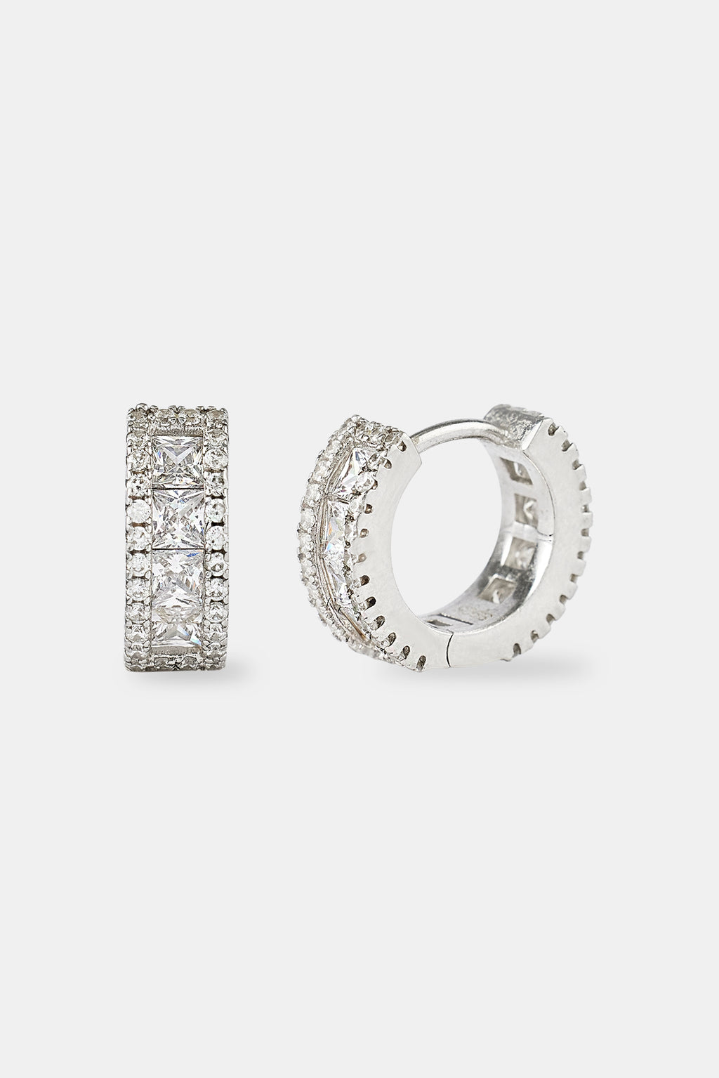 925 Clear CZ Baguette Hoop Earrings - White - 10mm