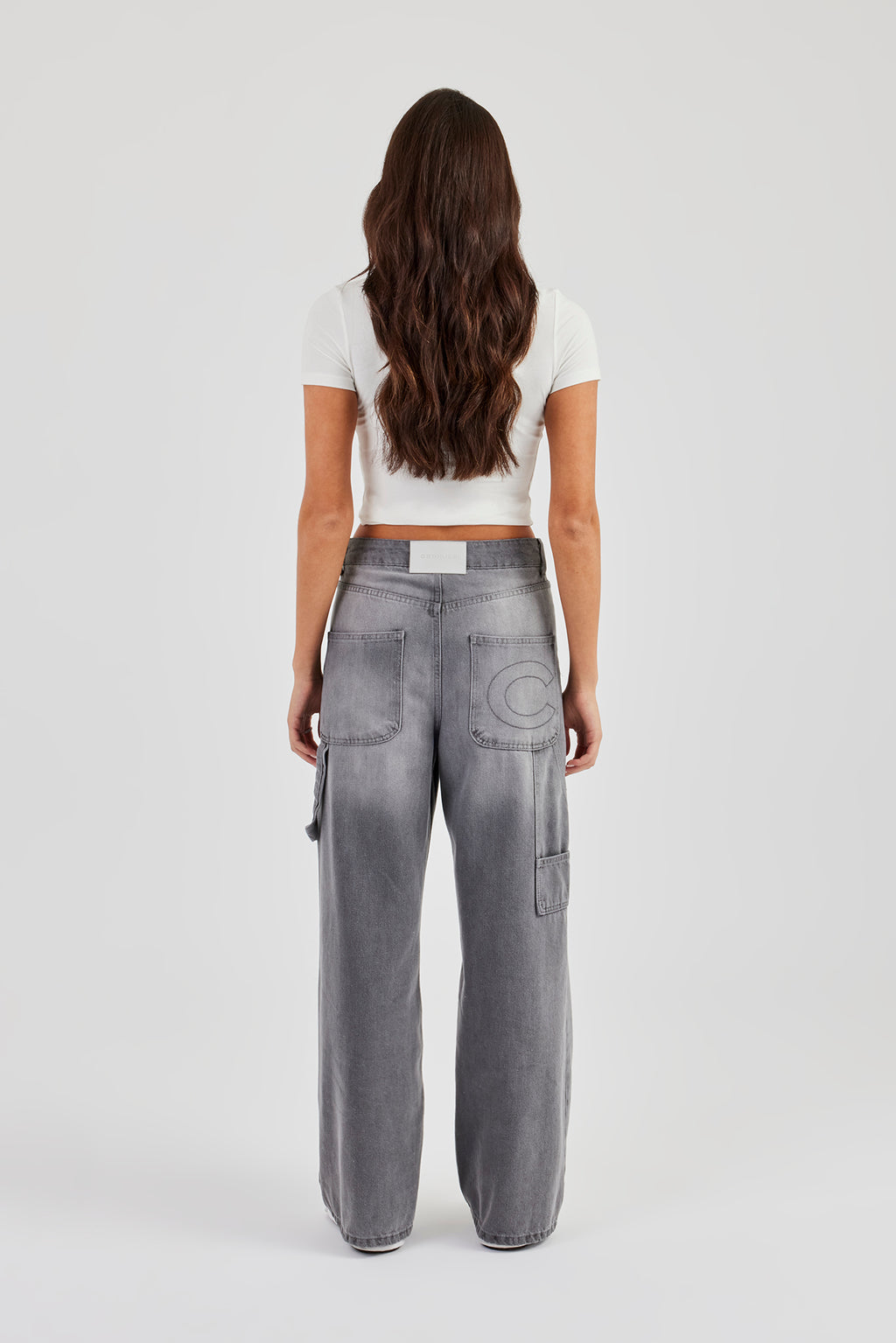 Washed grey jeans in a rigid cotton denim. Baggy fit finished with carpenter detailing.