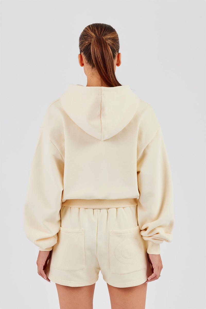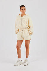 Butter yellow washed short with button detailing. Premium heavyweight soft touch jersey. Pair with the matching washed sweatshirt for the full look.