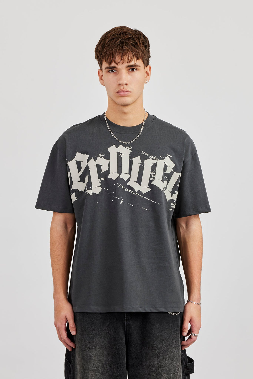 Charcoal short sleeve t-shirt featuring Cernucci front print. Oversized fit, dropped shoulders in a soft touch premium jersey.