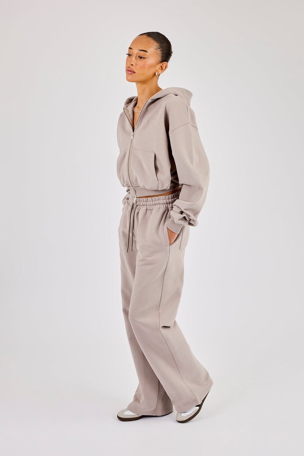 Stone wide leg jogger. Premium soft touch jersey with Cernucci branded PU patch on centre back waistband.