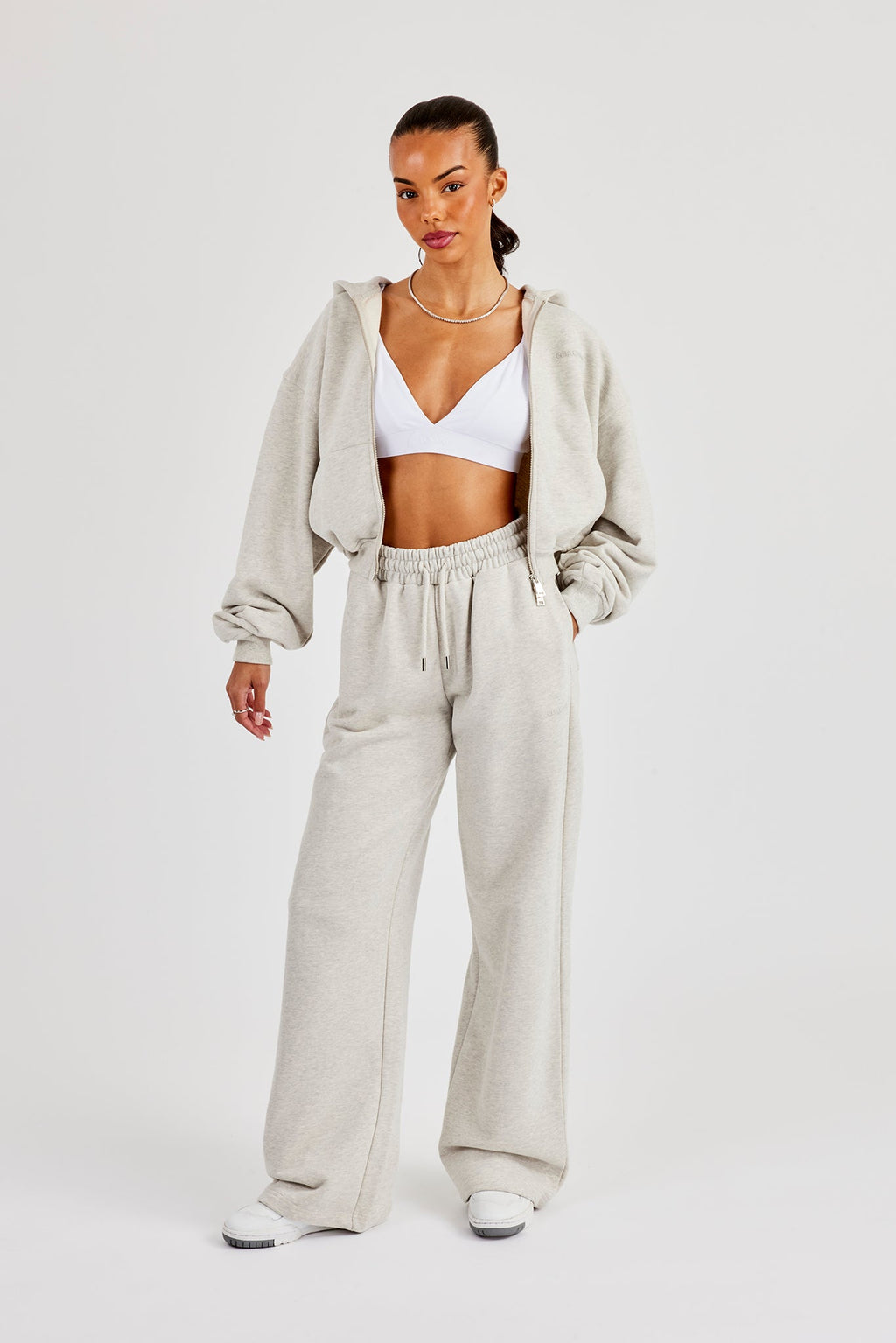 Ash grey wide leg jogger. Premium soft touch jersey with Cernucci branded PU patch on centre back waistband.