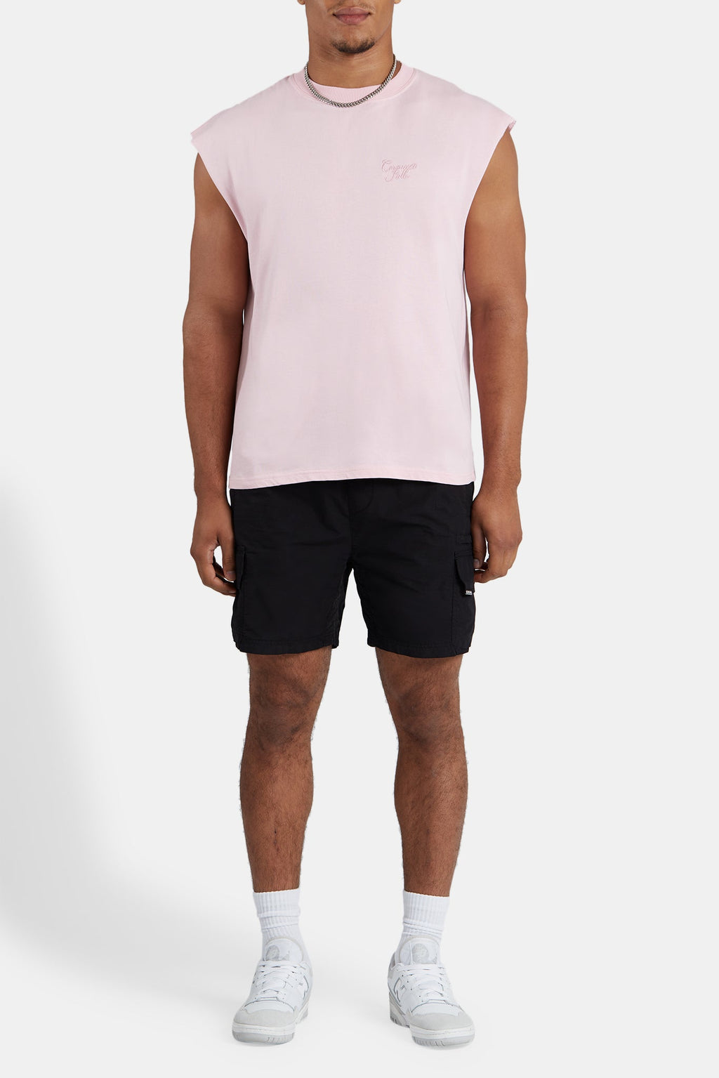 - Pink sleeveless tank top