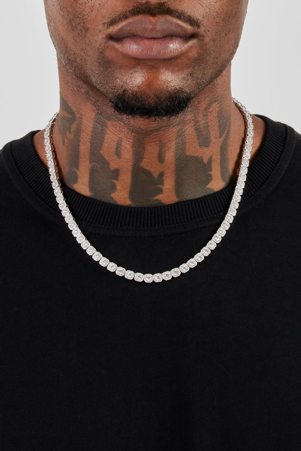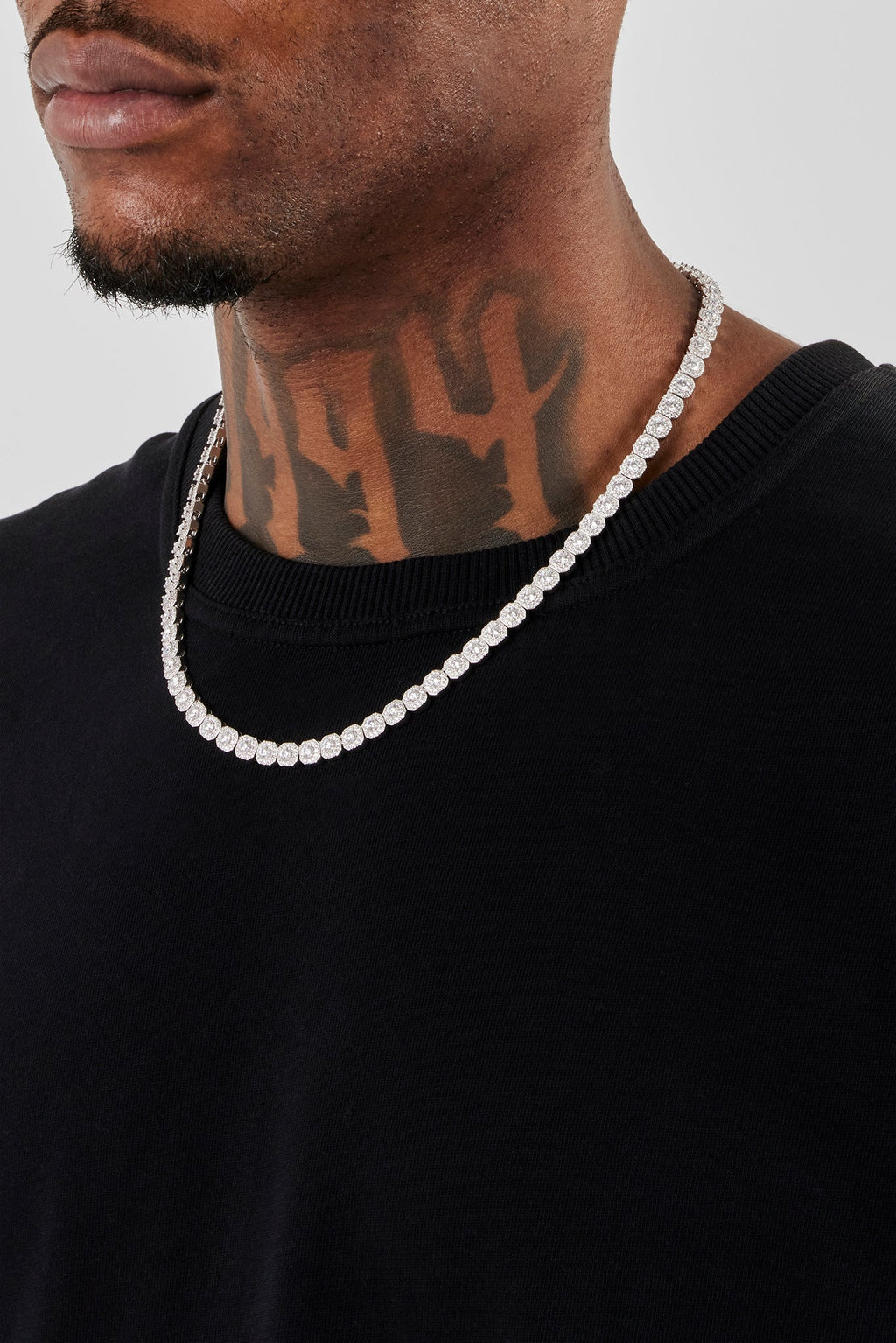 The Clustered Tennis Chain takes the classic tennis look and levels it up with tightly set stones for maximum shine. Clean, icy, and built to catch light from every angle—perfect for daily wear or turning heads on a night out.