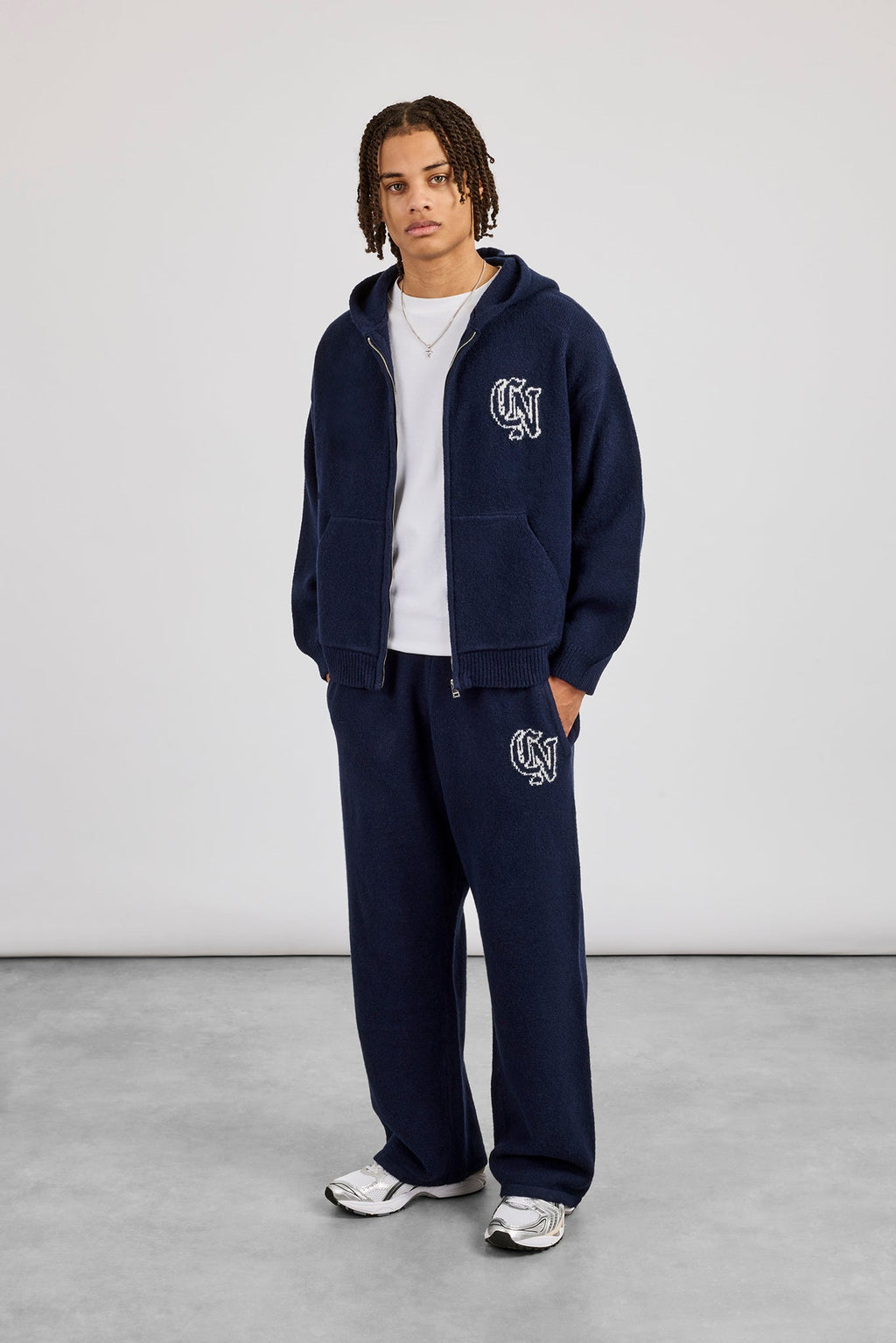 Zip through knitted hoodie in a soft touch knit with CN logo. Pair with our matching joggers to complete the look.