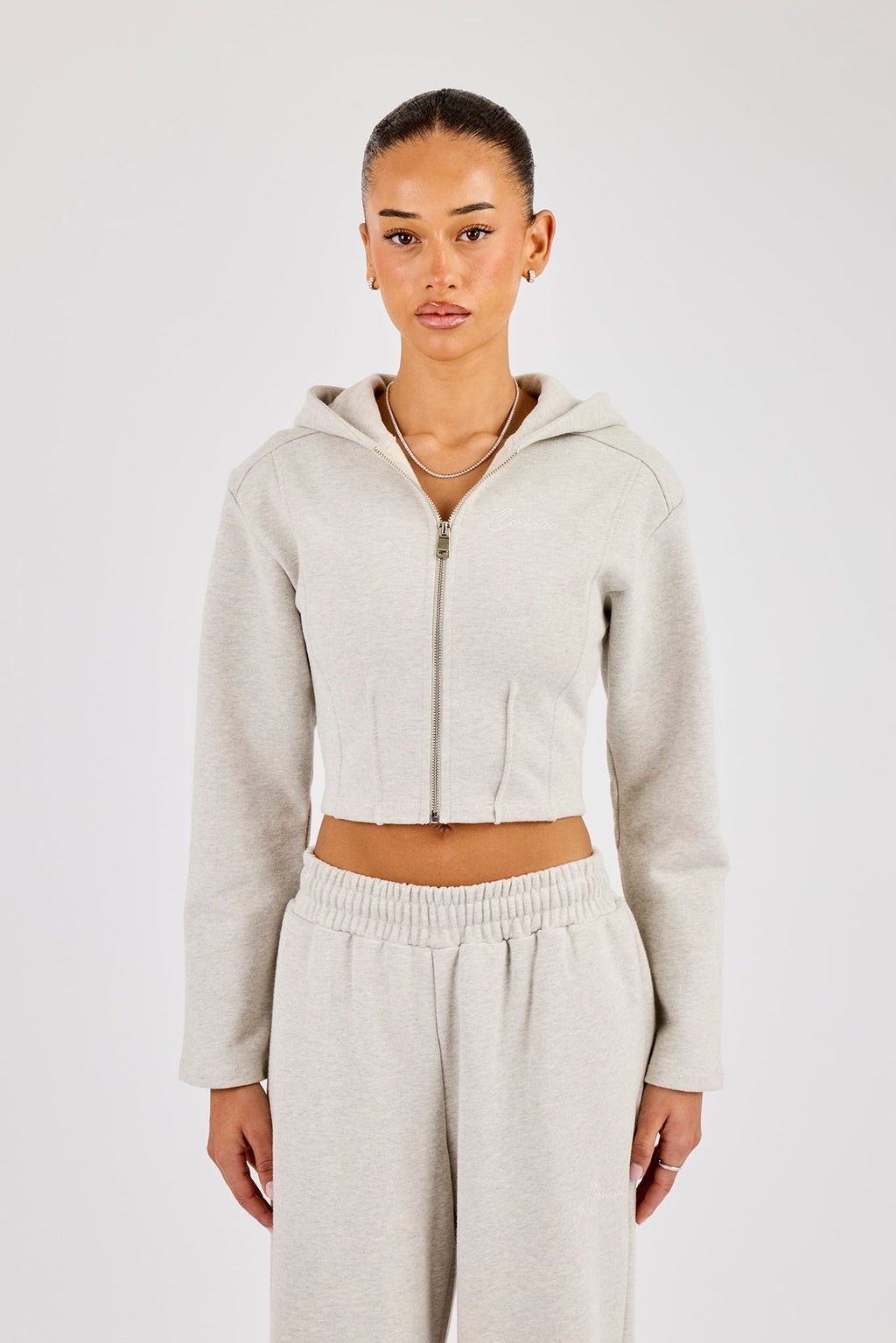 - Grey marl fitted corset hoodie