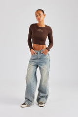 Distressed paint splatter jeans in antique wash, in rigid cotton denim. Baggy fit with, finished with branded trims.