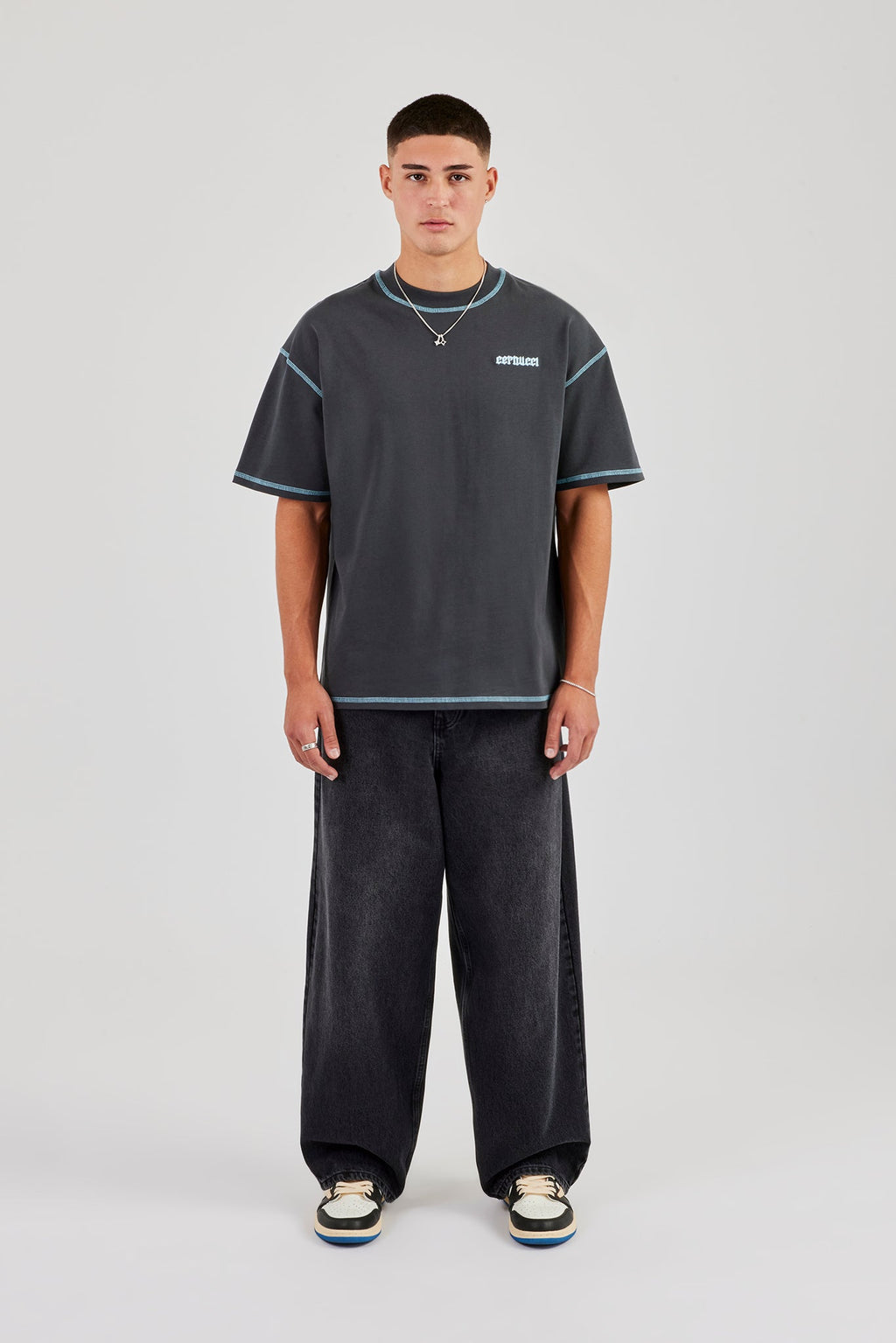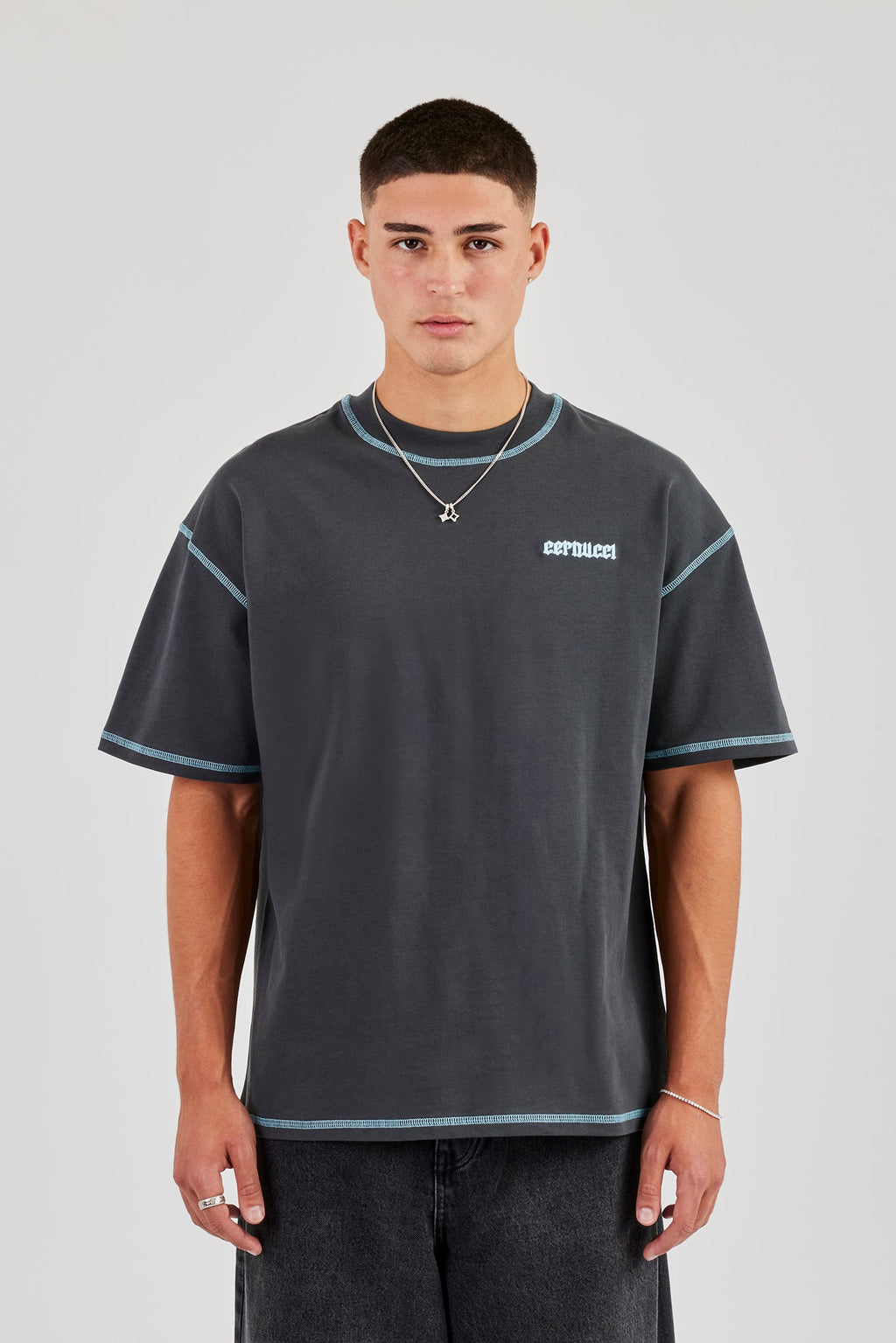 Charcoal short sleeve t-shirt featuring back print. Oversized fit, dropped shoulders in a soft touch premium jersey.
