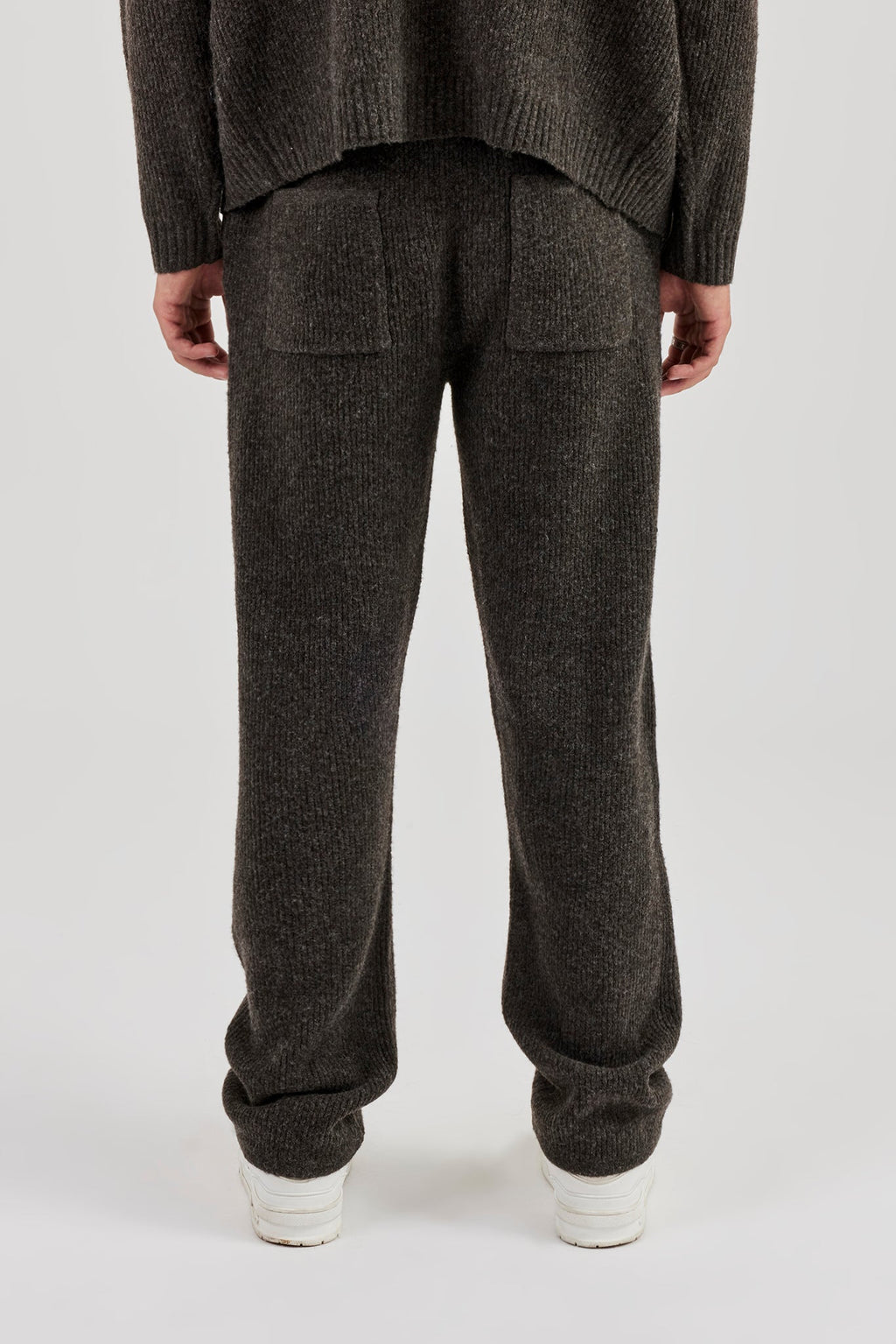 Chocolate straight leg jogger in a soft touch knit featuring tonal embroidery.