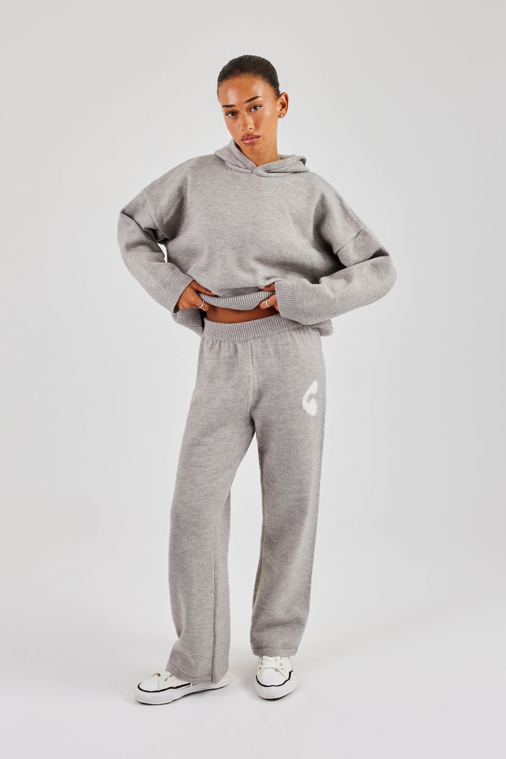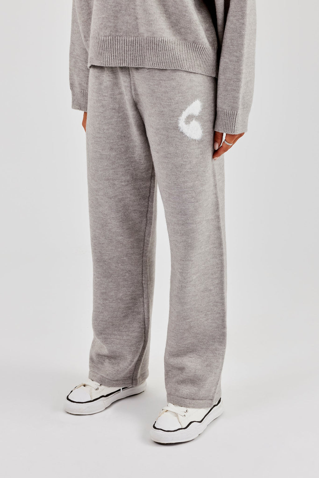 Grey wide leg jogger in a soft touch knit with intarsia C logo.