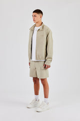 Stone zip through jacket with funnel neck, pair with our matching shorts to complete the look
