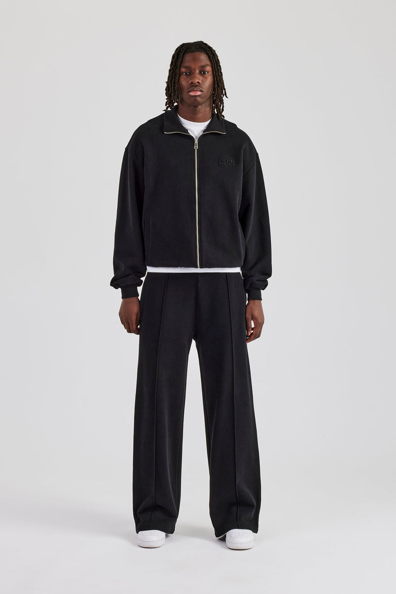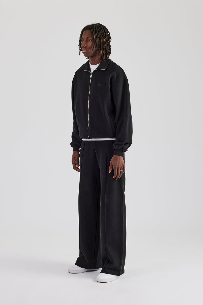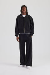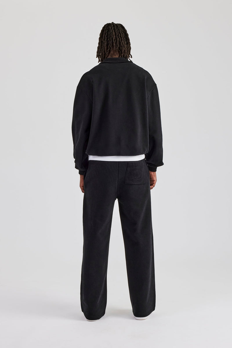 Black straight leg tailored jersey trouser in a medium weight, soft touch cotton.