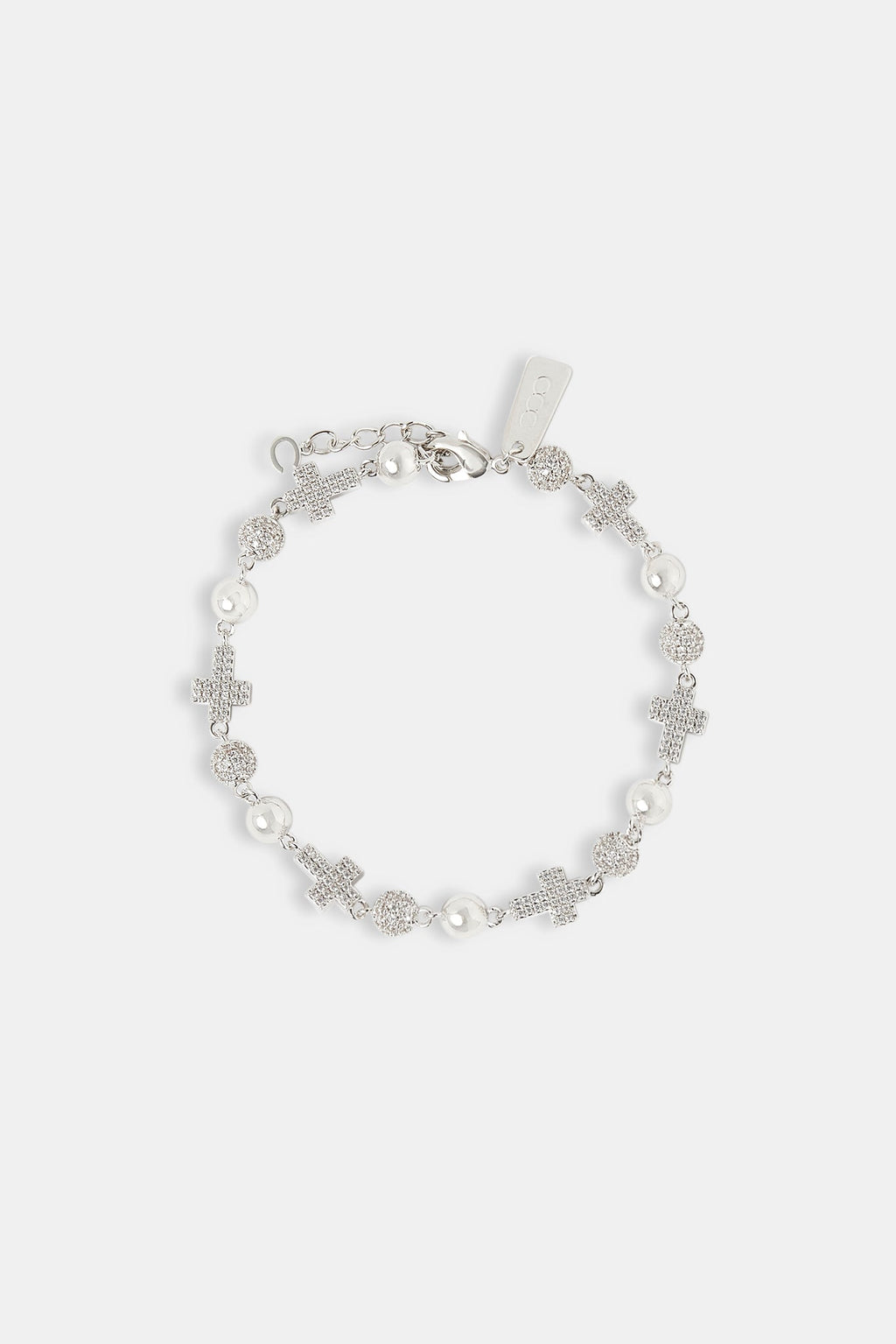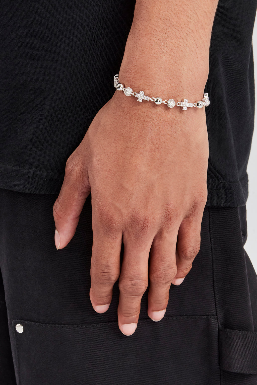 Our Iced Bead & Cross Bracelet goes hard. Pair with any pearl chain, to be worn for any occasion.
