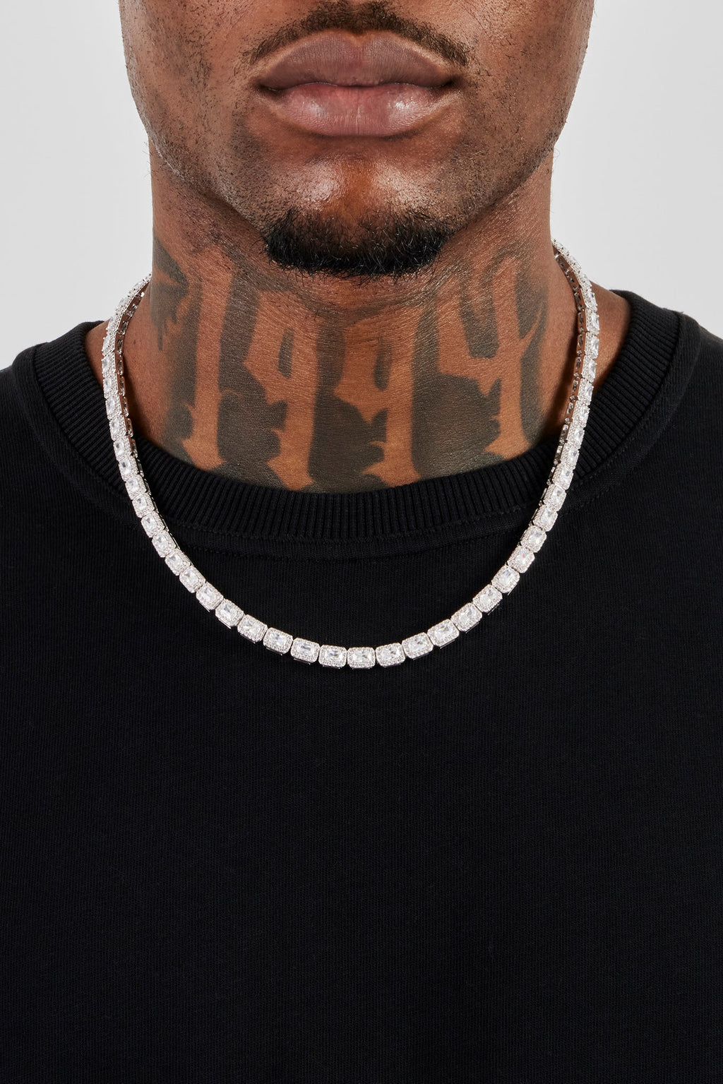 The Iced Bezel Cluster Tennis Chain takes the classic tennis look and levels it up with tightly set stones for maximum shine. Clean, icy, and built to catch light from every angle—perfect for daily wear or turning heads on a night out.