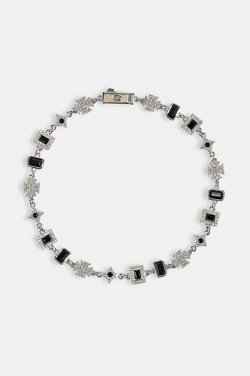 This bracelet’s stacked with mixed gemstones, all set in fully iced links that catch light from every angle. It’s colour, it’s contrast, it’s full flex.